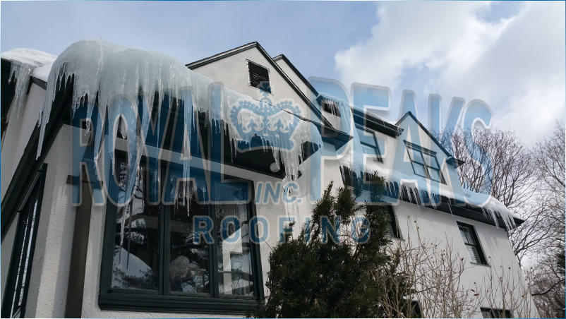 Royal Peaks Roofing has removed snow and ice from roof tops for three decades. Particularly troublesome are ice dams, which form at the edge of a roof, particularly along the eaves and in gutters, preventing melting snow from draining properly. This blockage can cause water to back up and potentially leak into the home, damaging walls, ceilings, insulation and other areas.
